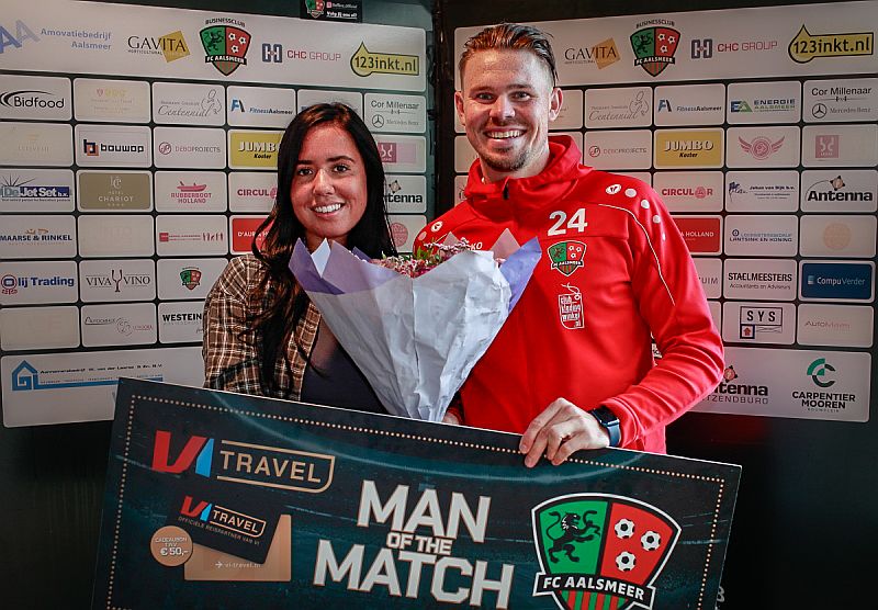 Traag en onzorgvuldig Hoeveel aanwijzingen Tump langs de lijn ook gaf, zijn ploeg raakte maar niet op het juiste spoor. Ook omdat AFC'34 de zaken goed voor elkaar had, de Alkmaarders speelden heel compact en gaven vrijwel geen ruimte weg. Waar normaal gesproken linksbuiten Yassin Kaabouni in zo'n geval een opening kan forceren met een individuele actie, was het vanwege de absentie van de flankspeler (voorlopig disciplinair geschorst) beholpen met de Aalsmeerse offensieve mogelijkheden. Pas richting de rust liet andere buitenspeler Vincent Noordam zich gelden, en werd uit zijn voorzet de enige Aalsmeerse kans voor rust overgekopt door Vahle.