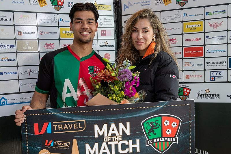 Een van de betere wedstrijden van het seizoen spelen, bijna geen kansen weggeven, zelf veel mogelijkheden creëren, maar na afloop toch met lege handen staan. Dat was het beeld zaterdagmiddag aan de Beethovenlaan waar vierde divisionist FC Aalsmeer een puike voorstelling gaf tegen het hoger geplaatste Hollandia, echter wel met een 2-1 nederlaag van het veld ging. De druiven waren dus nogal zuur voor de roodgroenen die in de slotfase van de competitie mikken op een hoge eindnotering die mogelijk een ticket voor de nacompetitie oplevert. Die missie wordt na de tiende verliespartij en met nog vier duels te spelen er niet makkelijker op voor trainer Erwin Tump en zijn selectie. Temeer FC Aalsmeer nog moet aantreden tegen drie ploegen uit de top vier. Op zich hoeft dat laatste niet veel te betekenen. Kijk maar maar naar vandaag hoe FC Aalsmeer nummer drie Hollandia bijna negentig minuten lang overvleugelde. Met aantrekkelijk combinatievoetbal en goed positiespel legde de thuisclub de bezoekers de wil op. Grootste probleem was dat FC Aalsmeer teveel kansen onbenut liet, zelfs een strafschop. Twee momenten van onachtzaamheid in de defensie deed de thuisclub uiteindelijk de das om. Al na twee minuten had de thuisformatie op voorsprong moeten staan. Uit een scherp aangesneden hoekschop van Vincent Noordam sloeg doelman Shaquille Eendragt de bal in zijn eigen doel. Arbiter Groenewegen keurde de goal echter af wegens hinderen van de keeper door Bryan Iliohan. Een discutabel besluit, de goalie werd hoogstens in de weg gelopen door een eigen verdediger. In plaats van 1-0 stond het tien minuten later 0-1 toen na een hoekschop de Aalsmeerse defensie niet kordaat optrad en Jim Broers Hollandia simpel op voorsprong kon zetten. Geheel tegen de verhouding in. Halverwege de eerste helft was Ilohan dichtbij de gelijkmaker, zijn uithaal raakte de paal. En even later een laag schot van Dylan Nieuwendijk ontbeerde kracht om Eendragt te verrassen. Een hoog schot van ver, na een slippertje Daan Vaneman, van Hollandia-middenvelder Niels Koster belandde op de lat, waarna FC Aalsmeer drie goede kansen kreeg om nog voor rust de zaak gelijk te trekken. Uit een slim genomen vrije trap van Vadim Olkhovych sloeg Eendragt de bal nog net uit de kruising, zag Ilias Ahamout zijn harde schuiver op het laatste moment gekeerd worden en kopte Michael Mol de bal een paar centimeter over de lat. FC Aalsmeer was dus prima op dreef, alleen de doelpunten ontbraken nog. Vroeg in het tweede bedrijf was het dan eindelijk raak voor de thuisploeg. Op het middenveld pikte Nieuwendijk het leer op, besloot tot een lange rush om af te sluiten met laag schot richting de linkerhoek. Eendragt kon er net zijn hand tegen krijgen, in de rebound was het voor Ahamout een koud kunstje de 1-1 in de touwen te rammen.