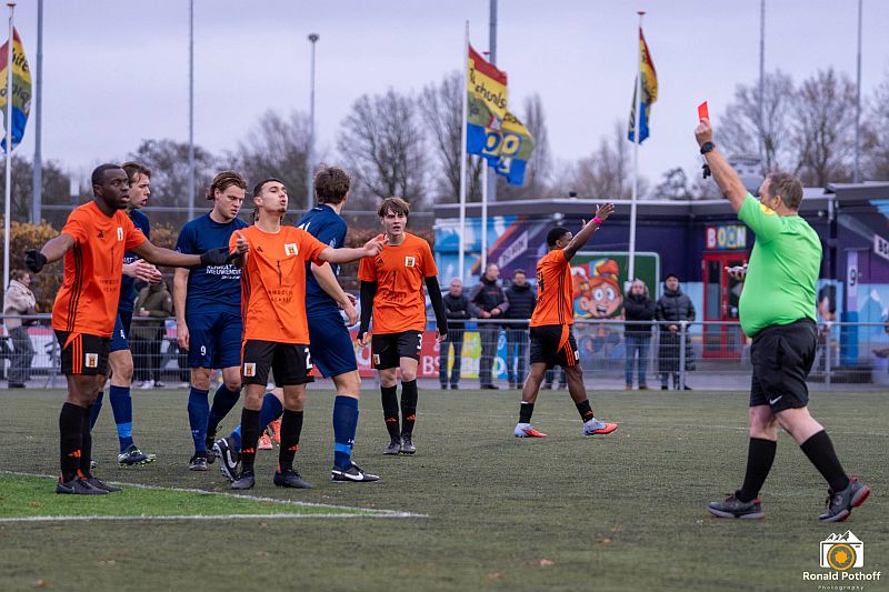 (Met video goals) Derdeklasser RKDES heeft 2025 afgesloten met een ruime zege op RKAVIC. In Amstelveen bij de rode lantaarndrager werd het 0-4, aanvaller Ruben Onderwater scoorde tweemaal. Het betekende voor de Kudelstaarters de achtste overwinning in de competitie en gaan als subtopper het nieuwe jaar in. De ploeg van trainer Siver Abdulrahman blijft als nummer drie op de ranglijst goed in het spoor van leider FC Breukelen dat met een wedstrijd minder gespeeld een marge heeft van drie punten. Op de tweede plek met twee punten verschil staat sc Buitenveldert, de enige ploeg uit de top vijf waar RKDES in de bijna voltooide eerste competitiehelft van wist te winnen. Lieten de roodzwarten vorig seizoen punten liggen tegen 'de kleintjes', dit voetbaljaar heeft RKDES voorlopig erg veel moeite om tegen hoog genoteerde clubs punten te pakken. De wedstrijden tegen SDZ, Wartburgia en FC Breukelen leverde voor RKDES drie keer een 2-1 nederlaag op. Slaagt Abdulrahman er vanaf januari in zijn formatie ook als een reuzendoder te laten fungeren komt de titel in 3B pas echt goed in zicht.
